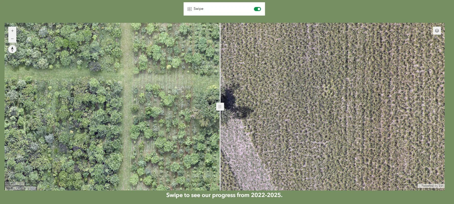 Using a swipe overlay, you can compare what the land looked like before planting began — and what it looks like now.