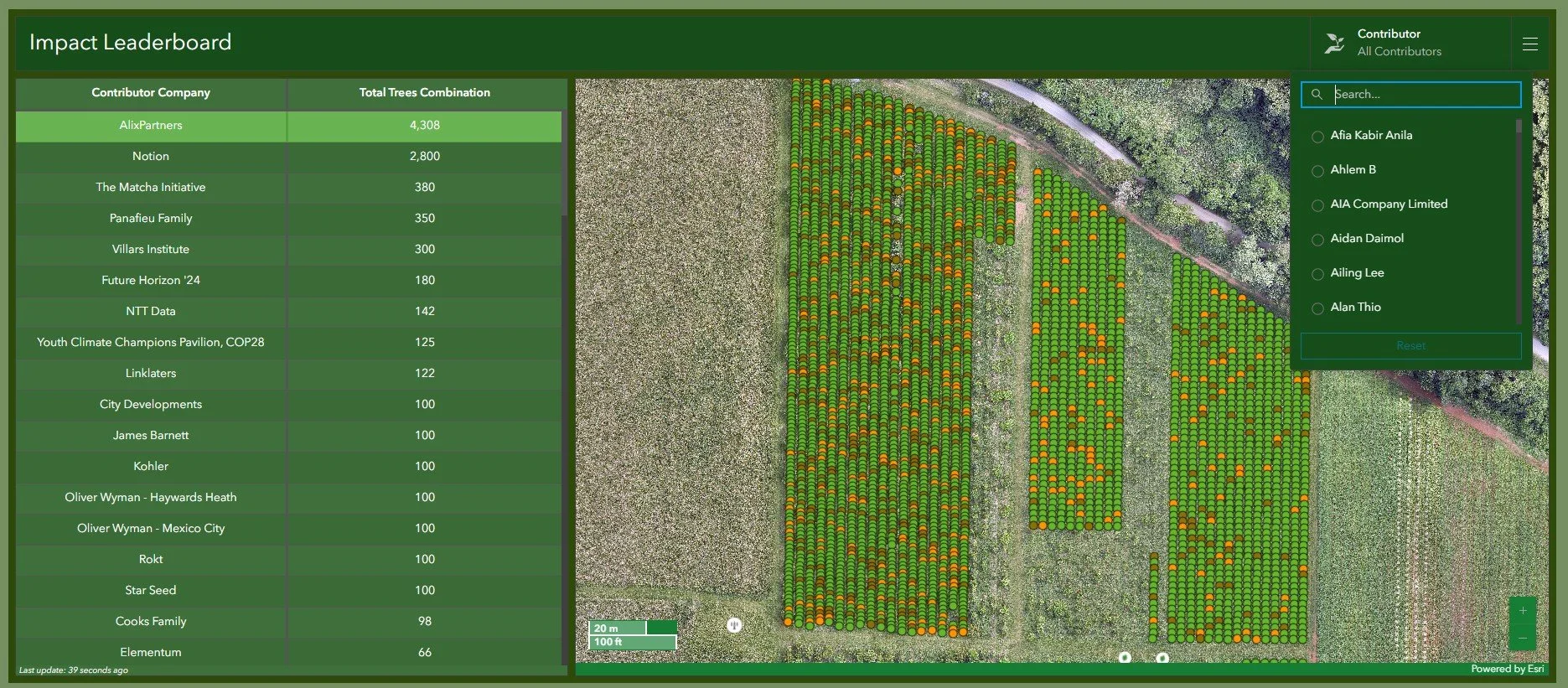 One of our favourite corners of the dashboard is the Leaderboard — a live, searchable tribute to everyone who’s supported putting roots in the ground with us.