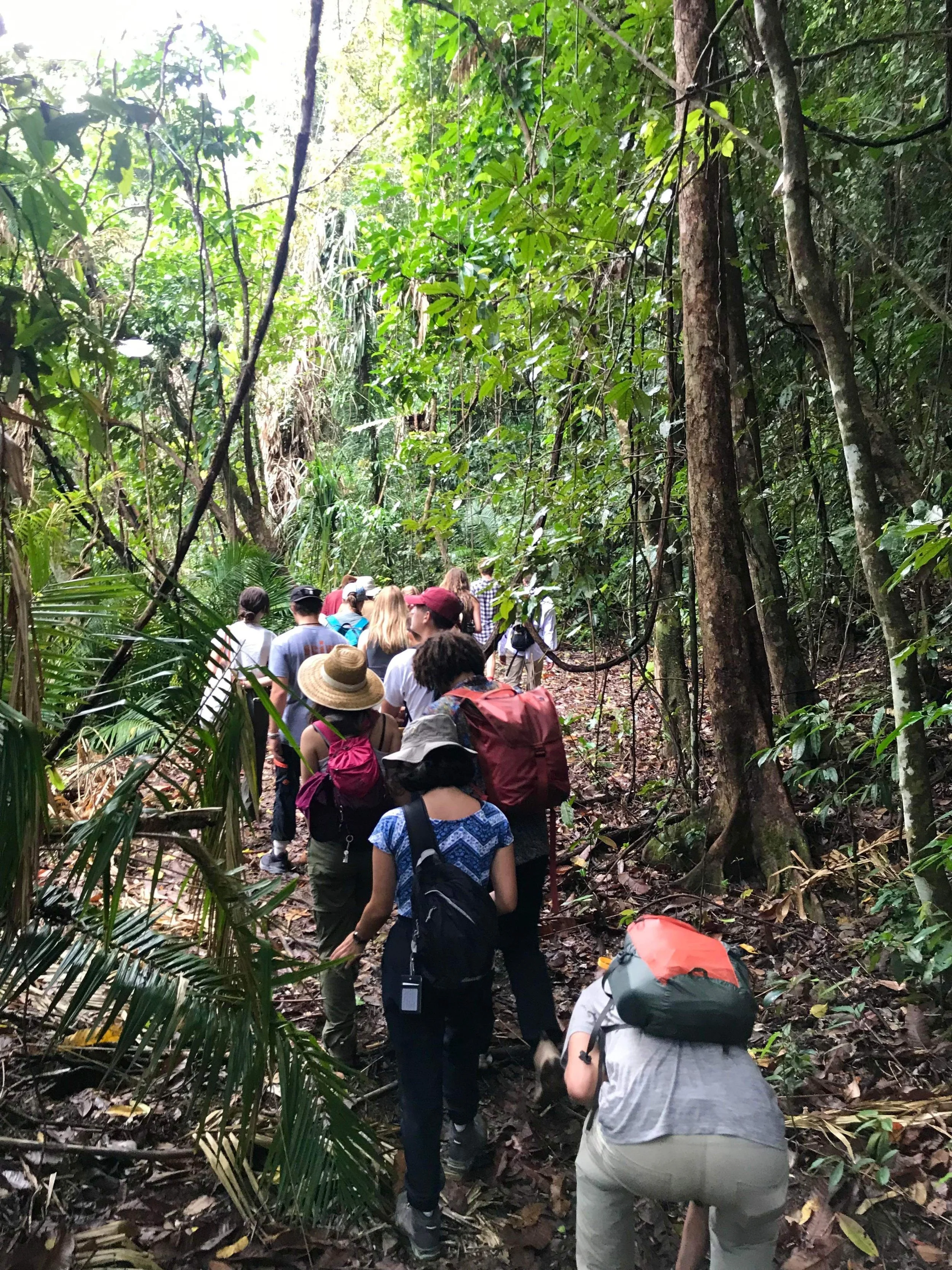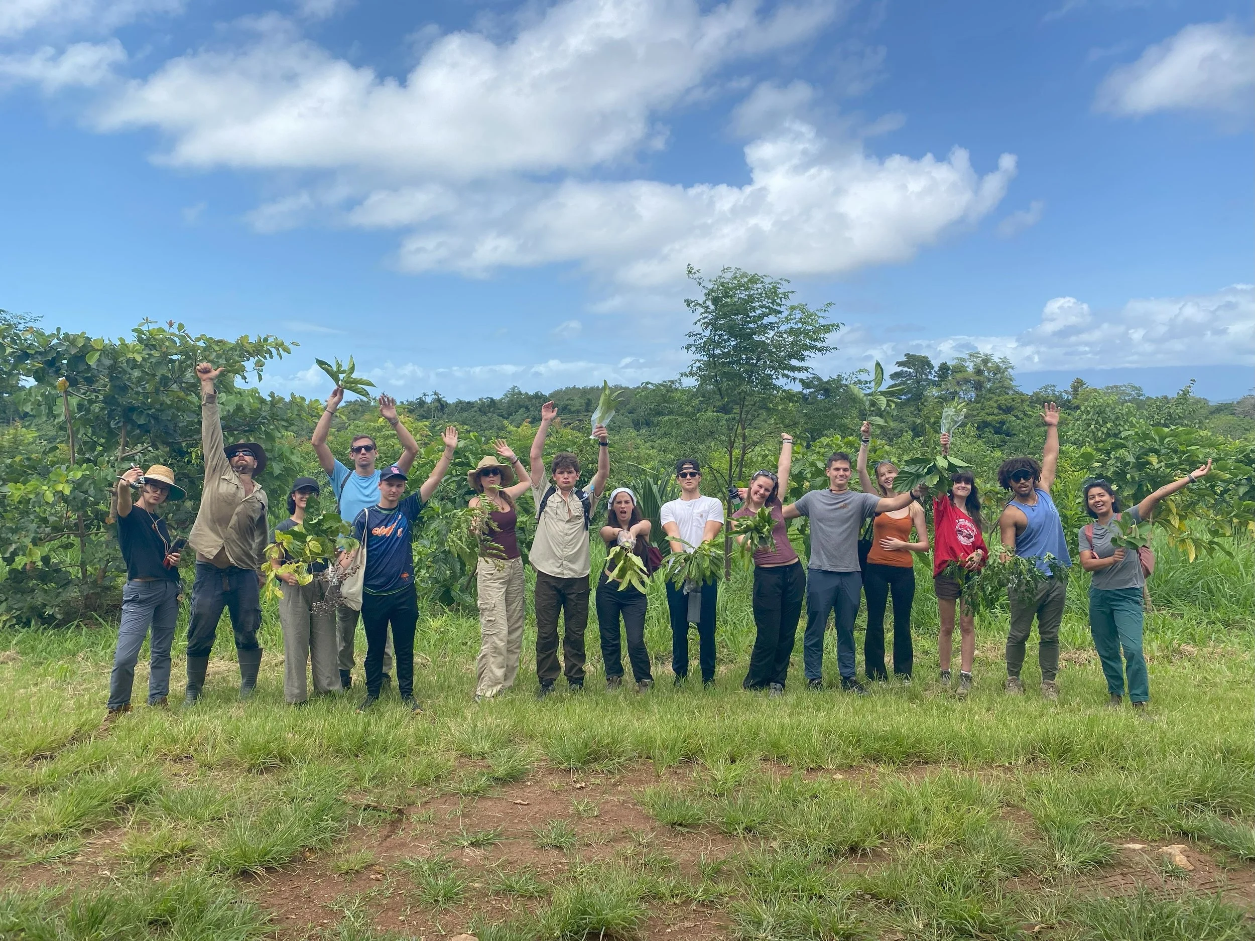 Tasks vary, but they’re always purposeful. Students dig holes in hard clay, rip through invasive guinea grass, nurture the planting rows, spread mulch, and water in seedlings - all while learning to read the landscape as a living system. Some days are bone-dry and scorching, with sweat soaking through shirts by morning break. Other days, the wet season turns the site to soup, boots sinking deep into earth as the rains drum overhead. Through it all, students come to understand one of the core truths of restoration work: the rainforest doesn’t follow a timetable. We adapt.
